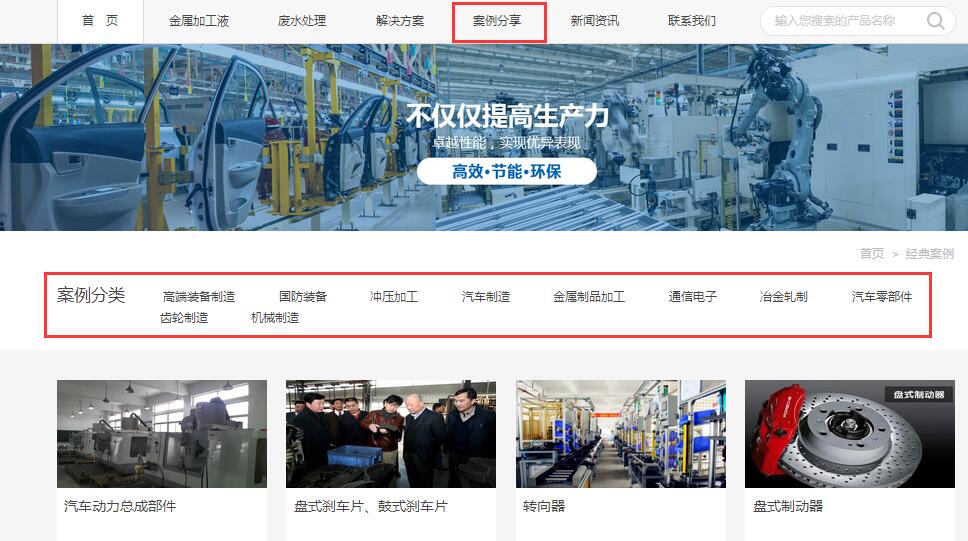 首页--金属加工液,出现产品类别,点击进入可了解具体产品介绍及案例分享。